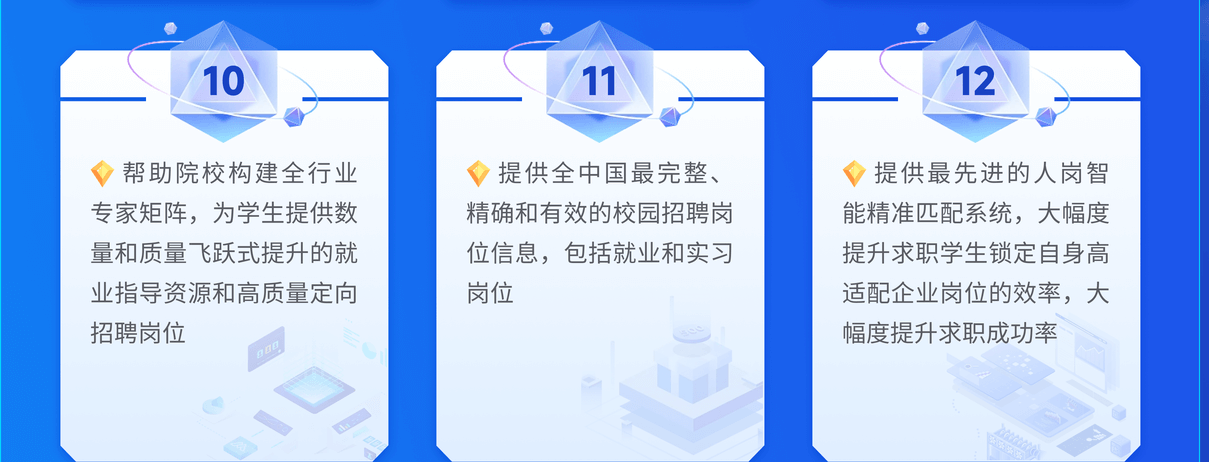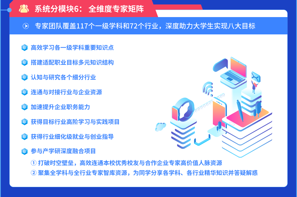 根据对超过1277家全行业龙头企业、典型事业单位和政府机构的深层研究。一切社会组织对大学生的价值判断,主要决定于三类高端能力体系的综合强度,对大学生的招录选拔都是针对三类高端能力所细分的18个指标进行测评判断。只是不同类型机构在18个细分指标的评分权重有所不同
